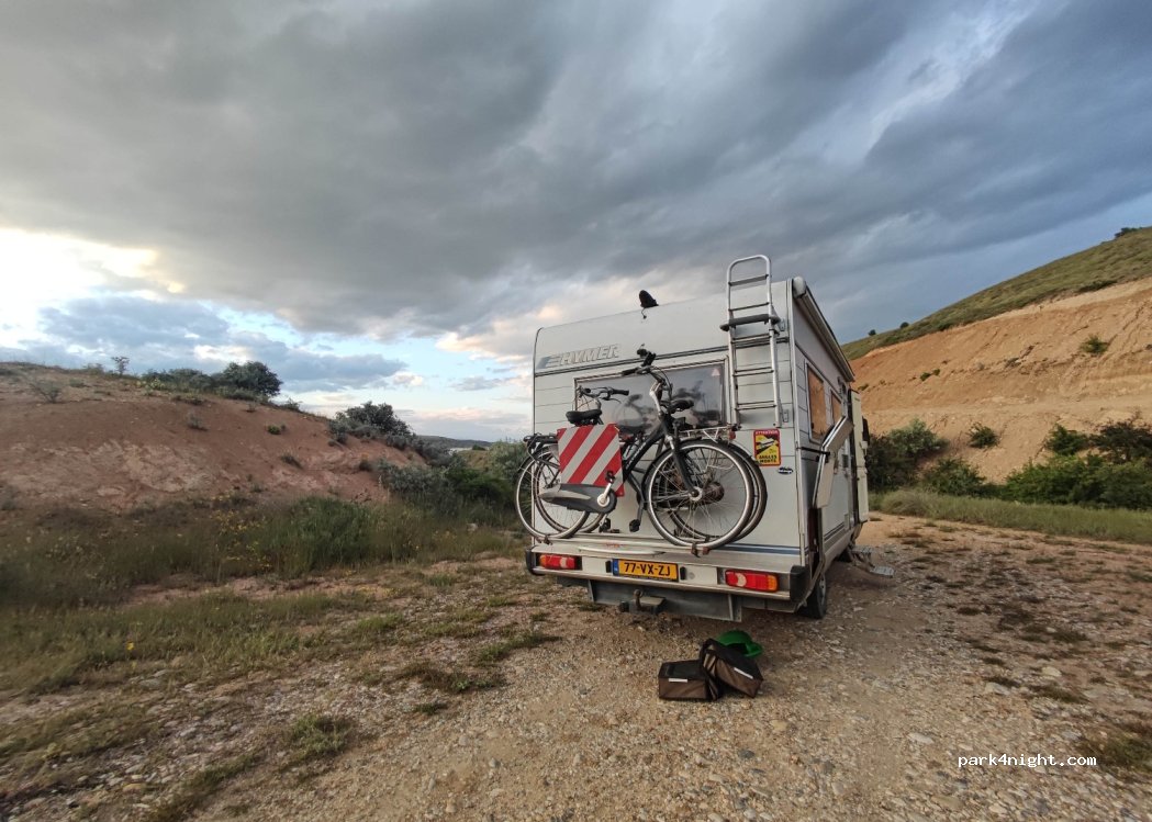 Très chouette spot, aménagé avec quelques services, fermés actuellement. Le parking pavé est en pente, mais il est préférable de stationner sur la partie terre caillouteuse, plate et plus spacieuse, en laissant le parking aux voitures. Accès par une route pavé courte et très pentue.