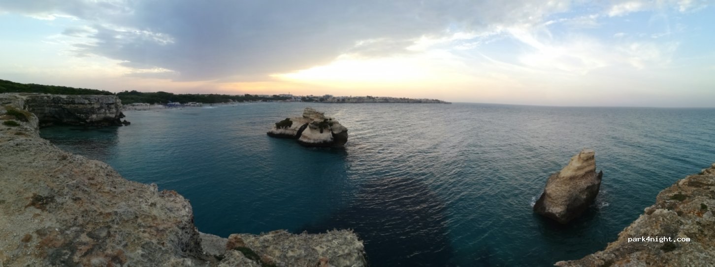Posto meraviglioso! Panorama sulla spiaggia di torre dell'Orso e I faraglioni delle due Sorelle, impagabile. Parcheggio camper 5€/24h, possibilità di fare acqua. Custode presente dalle 9 alle 20, gentilissimo, cordiale, disponibile a dare tutte le informazioni!