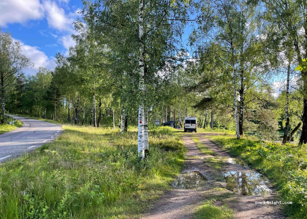 Great little stop. Multipli oppertunities around the lake if 1 spot is full. quiet and not a lot of traffic in the small road. we were parked here along two others. recommended!