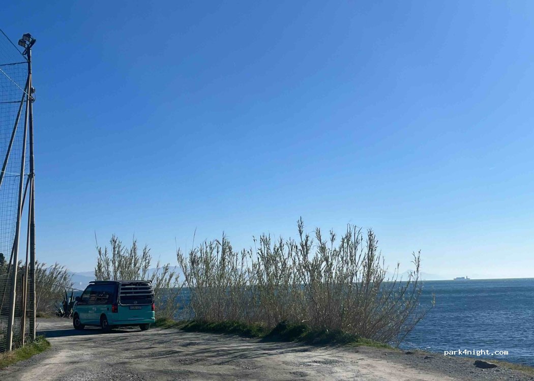 Parcheggio fronte mare gratuito. C’è una sbarra a 2.10m, ma era aperta anche in alta stagione. Tranquillo, ma senza servizi (bagni, docce e elettricità).