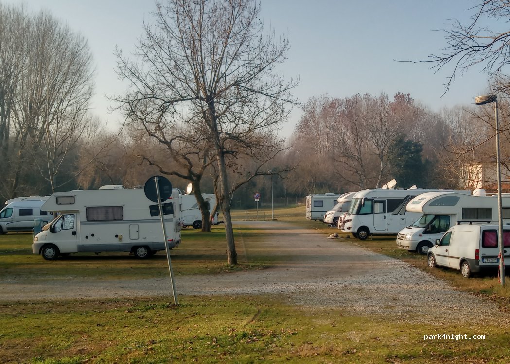 Zona d'autocaravanes, hi hem estat dos nits molt bé. Està molt ben situada, just a l'altra costat del riu-llac de la zona centre de Mantova, simplement es pot anar en 15 Min a peu pel carril bici o agafar la naveta gratuïta que et porta directament davant del Palau ducal des del parking del costat de l'àrea. Ens ha costat 15€/dia, l'única pega és que degut al Covid estaven tancats els banys