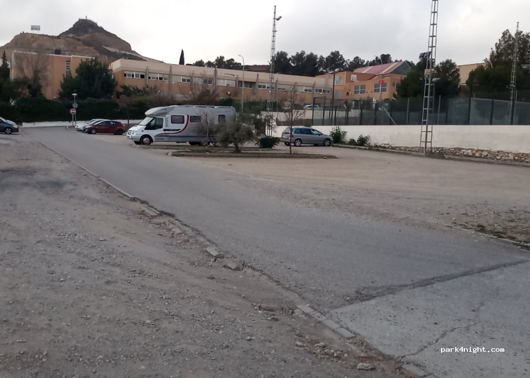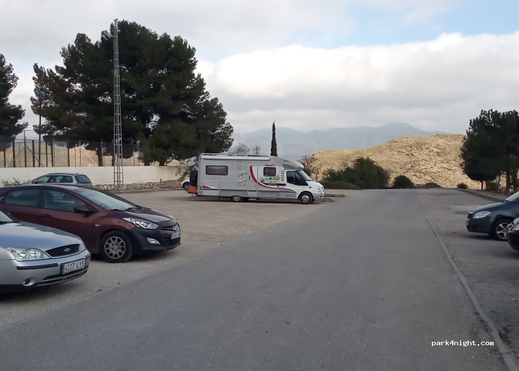 Parking tierra nivelado tranquilo.cerca polideportivo municipal. piscina restaurante a 50 metros.1 euro entrada .piscina cubierta de octubre a mayo. Posibilidad visitar el mortero más grande del mundo.museo del mármol.plaza de los leones.