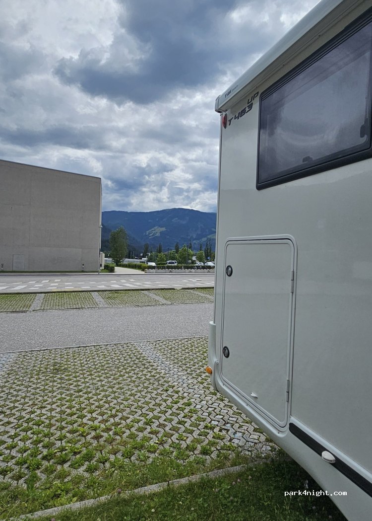 Parcheggiati una notte, molto silenziosa, si paga solo lunedì-venerdì dalle 8.00 alle 16.30. Di fianco ristorante pizzeria, palestra di arrampicata e boulder e complesso sportivo oltre al palasport. Tariffa camper 1,50 €