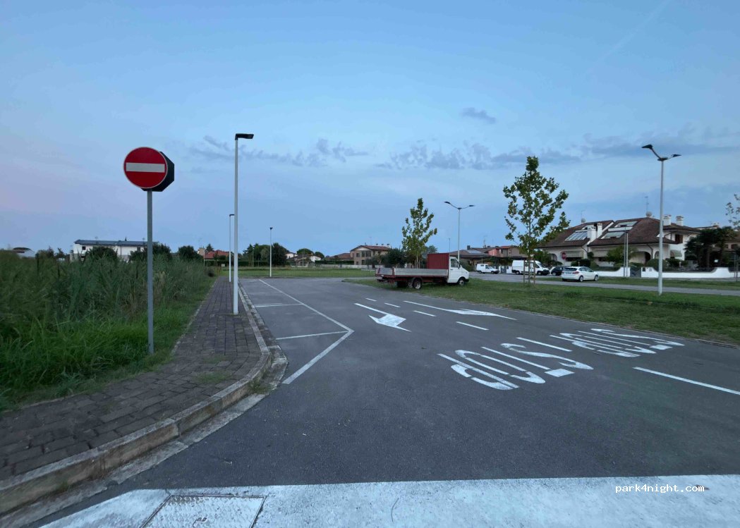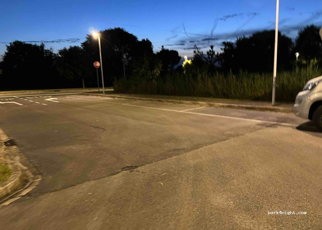 Ampio parcheggio con area verde, senza servizi, ma tranquillo.