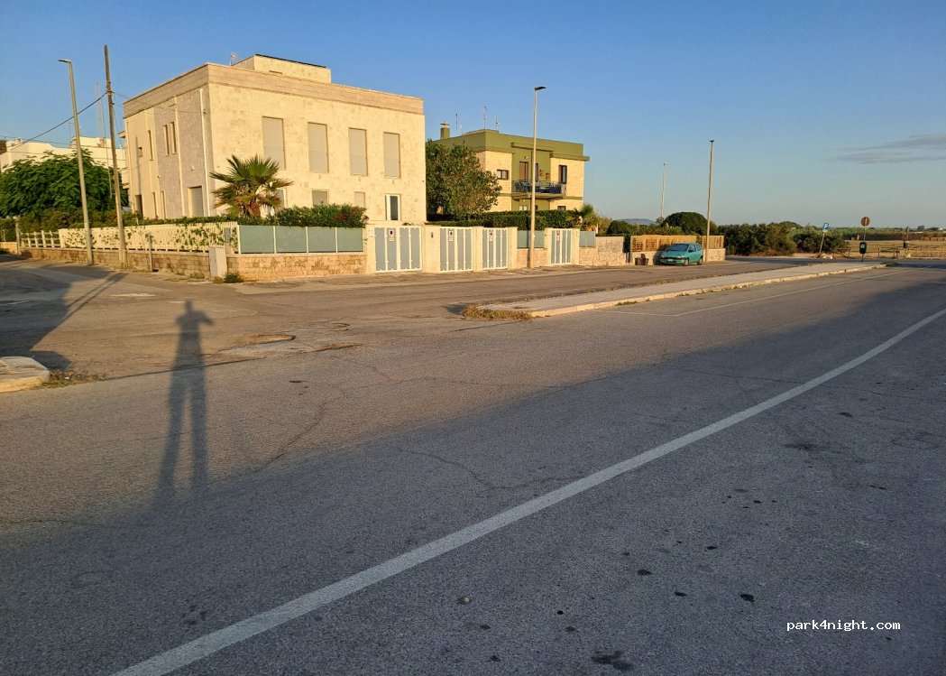 in piano su asfalto, abbastanza tranquillo. Mare a pochi metri con accesso da scogli e ma non certo agevole.