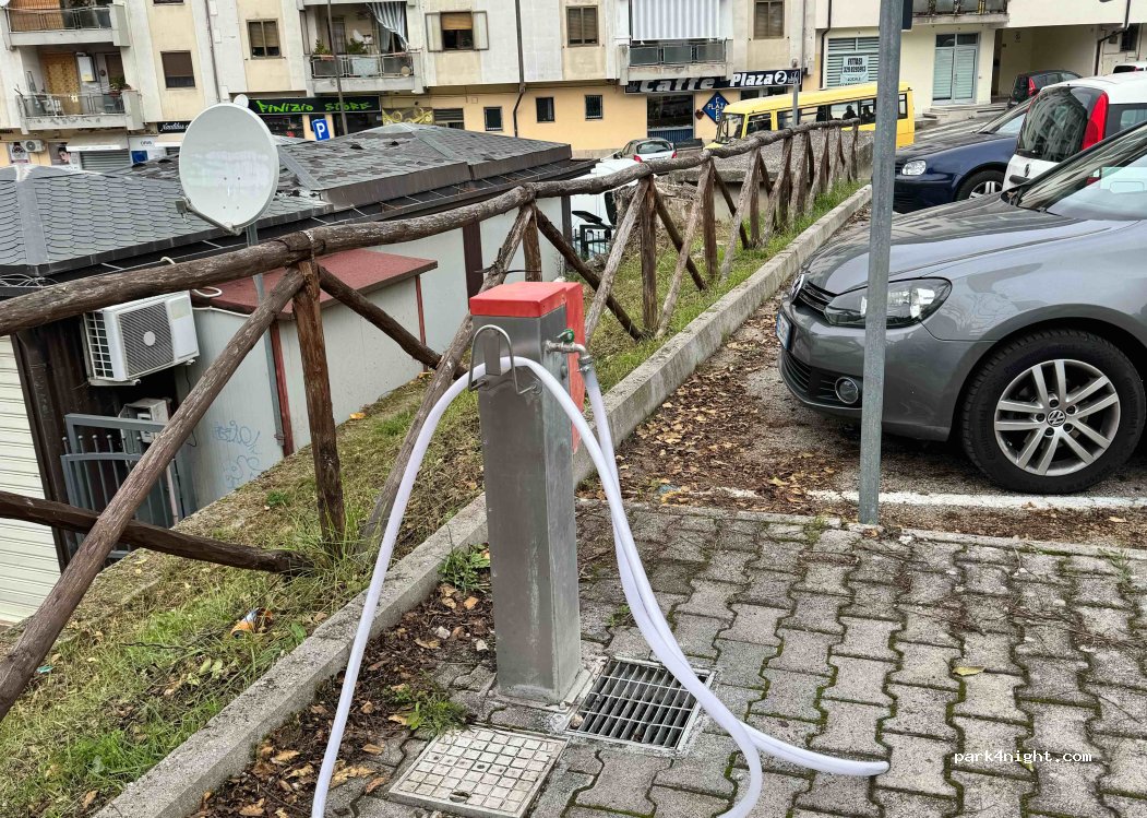 Free disposal of black and gray water, free fresh water, free to spend the night, thank you Potenza for such hospitality! During the night it was peaceful enough. At first look, when you come from the road it seems like you misnavigated, but the drainage and camper reserved places are on the second plateau of public residental parking. Been there on 29/12/2024