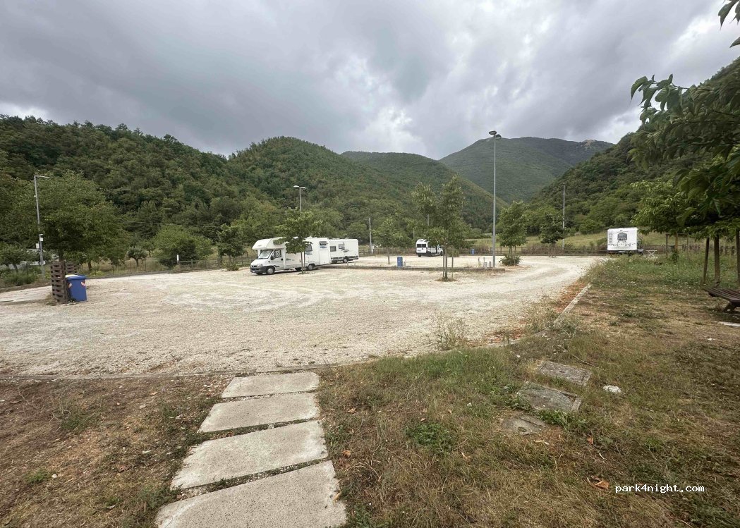 Area sosta completamente gratuita. durante la settimana poco affollata. base per bellissimi percorsi in ebike. il sentiero di San Francesco in mezzo al bosco che porta a Pioraco. Acqua in tutti i luoghi freschissima dalle fontane. Consiglio la nicchia dei sapori ottimi aperitivi con taglieri di prodotti locali super. Carattwristico Agriturismo il sentiero del sole