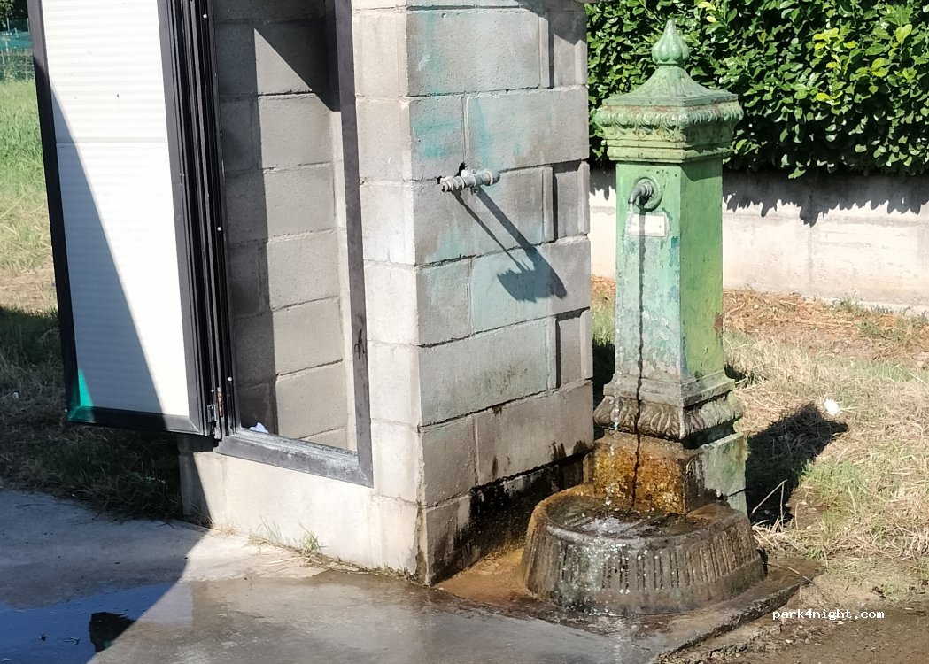 Espace pour faire le plein d'eau douce/évacuer les eaux usées. Fontaine disponible, mais sans aucune possibilité de connexion. Il est donc préférable d'apporter un arrosoir ou de grandes bouteilles avec vous. Endroit très calme, mais juste à côté d'un dépotoir. Tourner à gauche juste avant le cimetière au bout de la ville. "Isola ecologica" suit.
