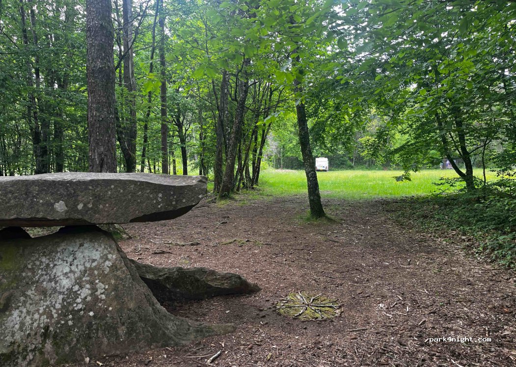 Endroit agréable calme et très silencieux petite ballade à faire et dolmen à voir et une curiosité à voir en pleine forêt bien pour passer une nuitée