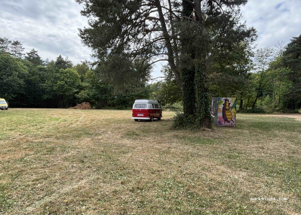 Un coin très calme aux abords d'une forêt. Il y a assez place pour trouver au choix une place au soleil ou à l'ombre pour plusieurs vans. Très facile à trouver les coordonnées GPS