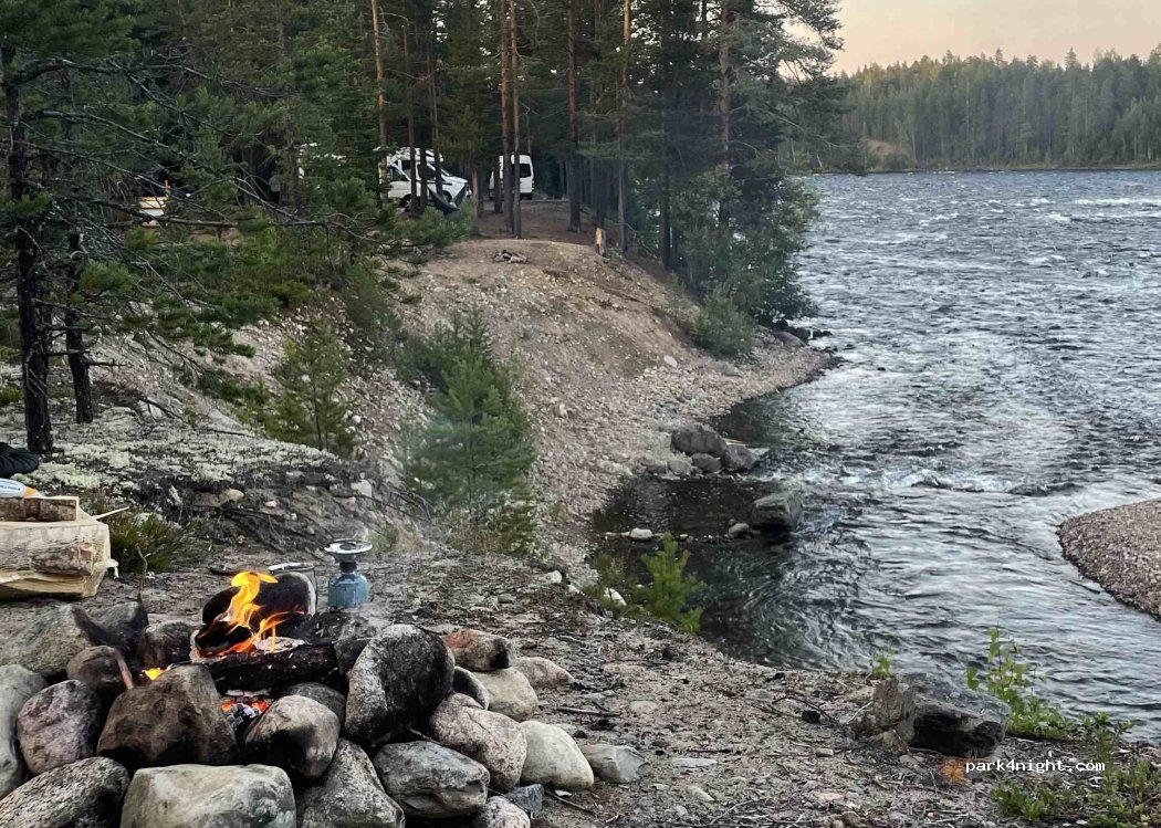 Der für uns schönste Stellplatz Schwedens!! Wahnsinnig toller Ausblick, keine Mücken, vorgefertigte Feuerstellen. Von dort aus kann man direkt zu den Stromschnellen wandern (Hin- und Zurück ca. 3 Stunden). Ebenfalls sehr zu empfehlen!