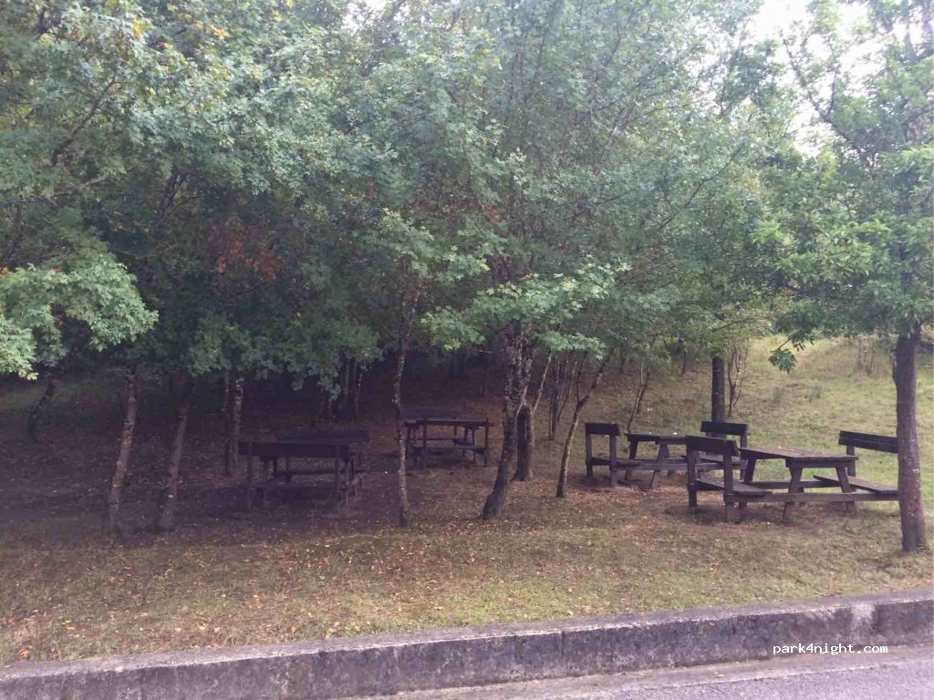 Área de picnic en la fuente Mercure. Tres mesas y fuentes públicas de agua, muy frecuentadas por los lugareños. Lejos de la carretera principal y tranquilo por la noche.