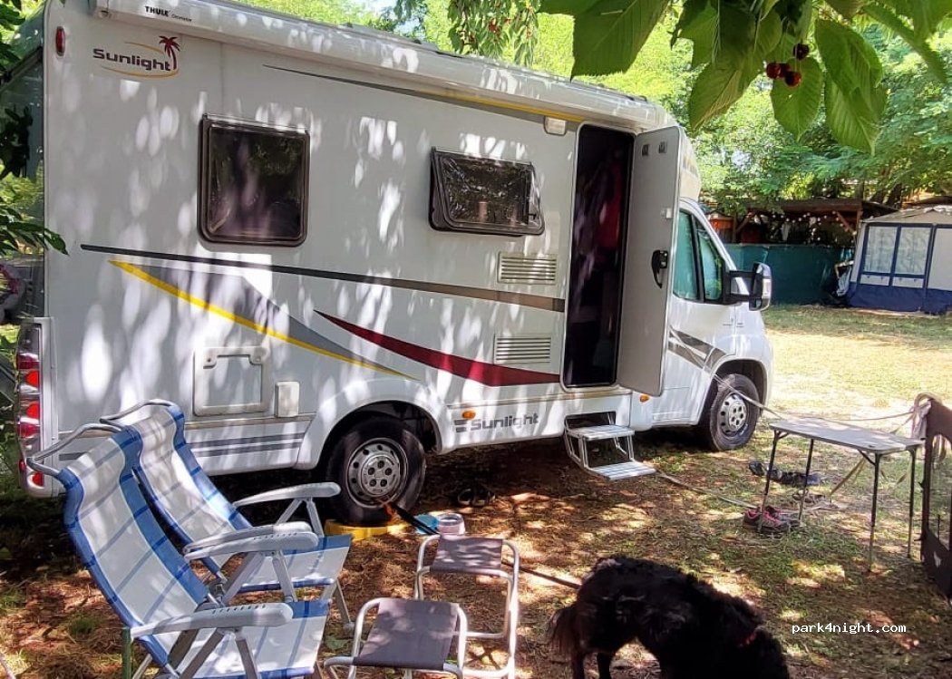 Die Zufahrt ist etwas eng für größere Wohnmobile aber ok, wenn man den richtigen Weg kennt. Klein, familiär, kein Schnick Schnack, aber alles da was man braucht. Hunde willkommen. Preis 1 Person, 1 Hund, 1 WoMo inkl Strom, Ver- und Entsorgung, WLAN 20 €/Nacht Ausgezeichnete Restaurants in 5 Minuten Fußweg erreichbar. Eigener kleiner Badebereich, auch für Hunde. Komme sicher wieder!