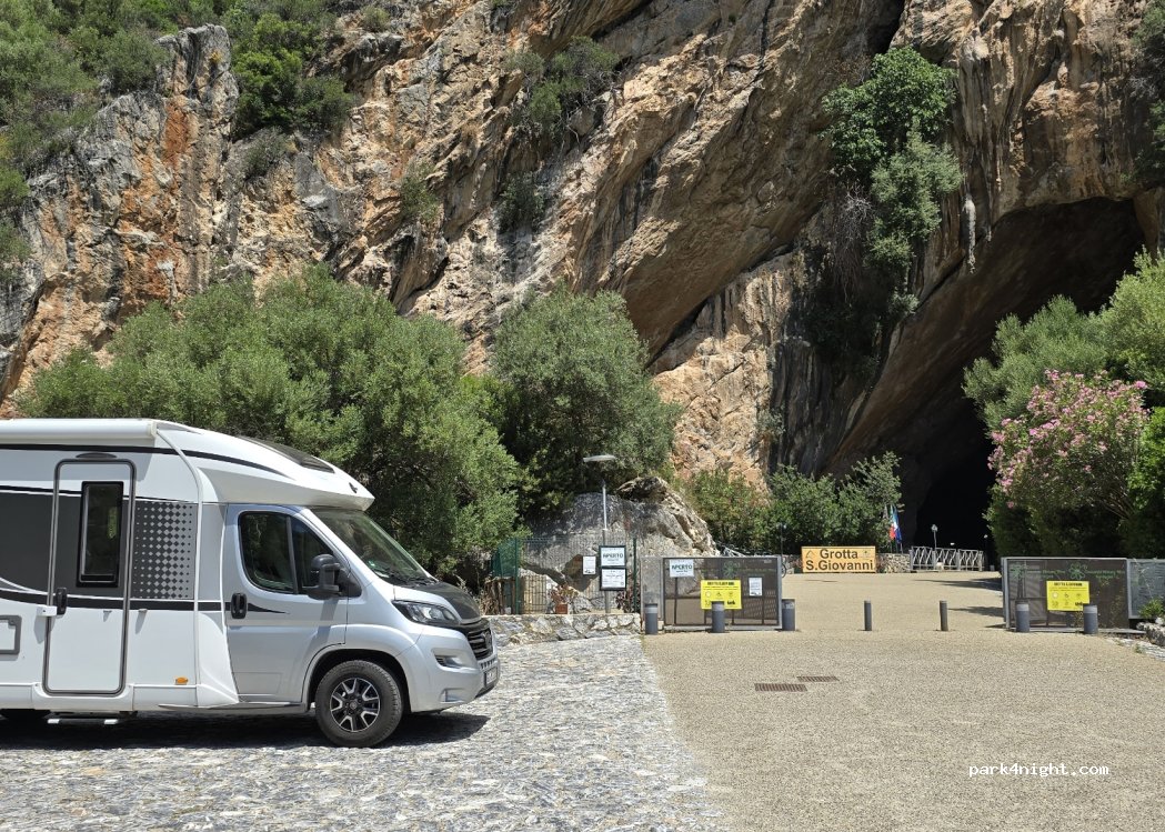Posto fantastico, stavamo per andare in un campeggio ma visto che per via del covid hanno chiuso ai van ( niente servizi) abbiamo optato per una nottata in libera. consiglio di non fermarsi al parcheggio della grotta ma di passare il ponte e raggiungere l'area dietro la chiesetta. abbiamo passato una notte tra ulivi centenari in una comoda piazzola. pochi local che in tarda serata sono venuti su a farsi un giro insieme a un branco di caprette che sono sparite al mattino. un signore del posto ci ha confermato che è possibile sostare e capeggiare. ottimo anche per fare trekking o per gli arrampicatori, peccato che la grotta non sia visitabile per via dei lavori di messa in sicurezza. :)
