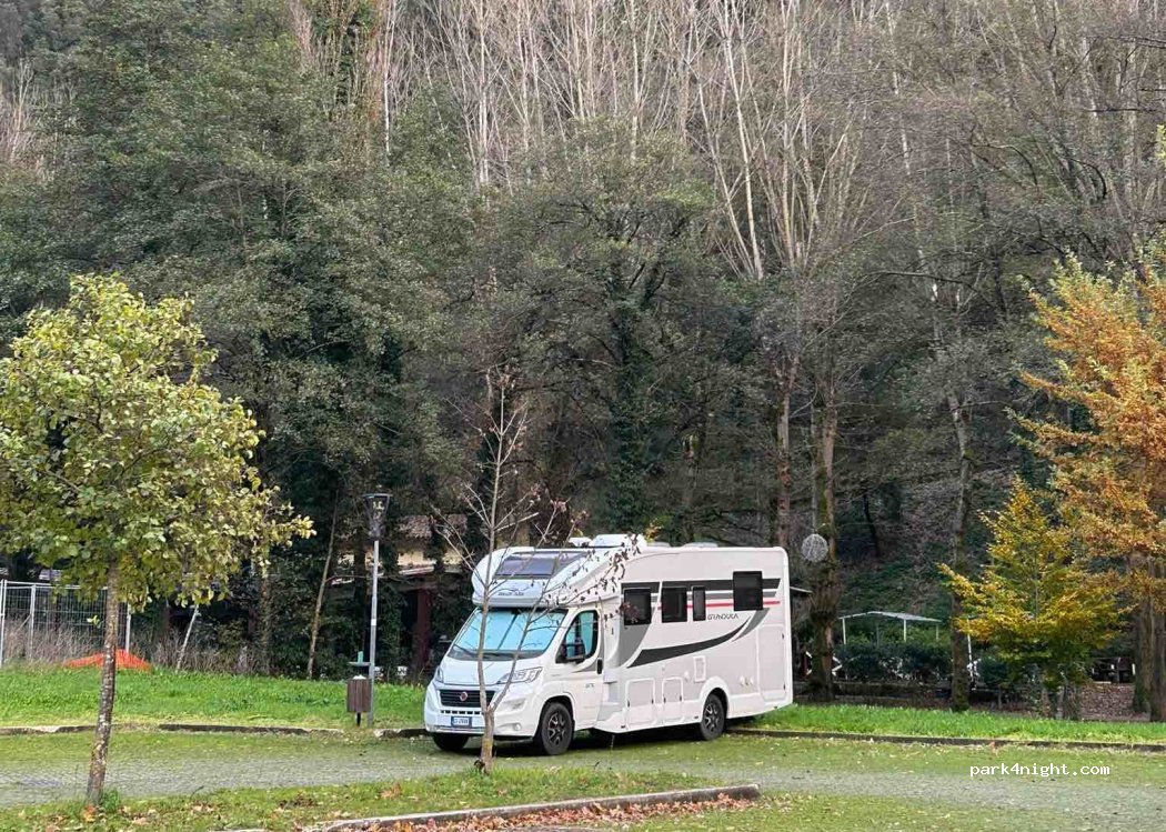 Free parking within walking distance of the beautiful village of Scheggino. Silent, various facilities nearby where to eat and buy local products. Small river with goslings. Picnic tables, perfect for a night or two, without services.