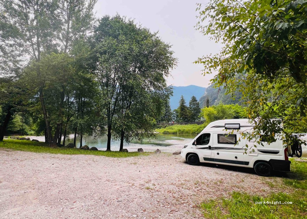 Sehr schöner Stellplatz. Eigentlich ein Picknickplatz am Rande eines kleinen Industriegebiets. Zwei Nächte dort verbracht. Zumindest jetzt im Winter, war es sehr ruhig und einsam. Zu Fuß ca. 1km bis Ortsmitte, 6,5km bis zum Idro-See.
