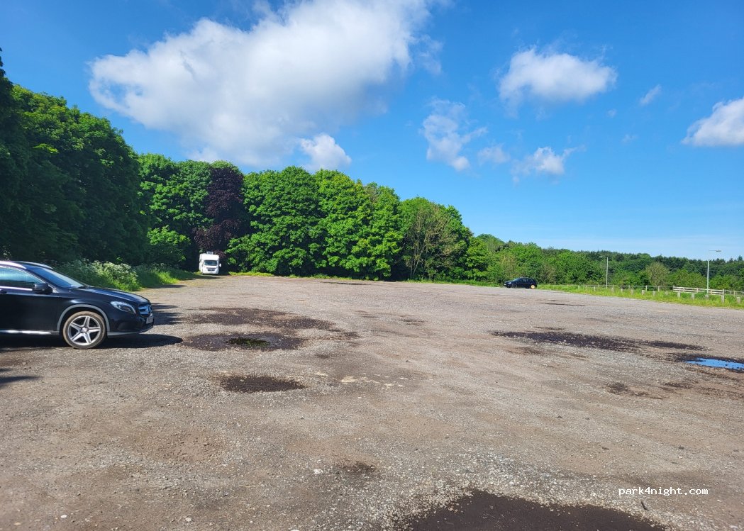 Large open hard standing. There are no services on here. supermarket and fast food shops within a mile. The car park is used by the