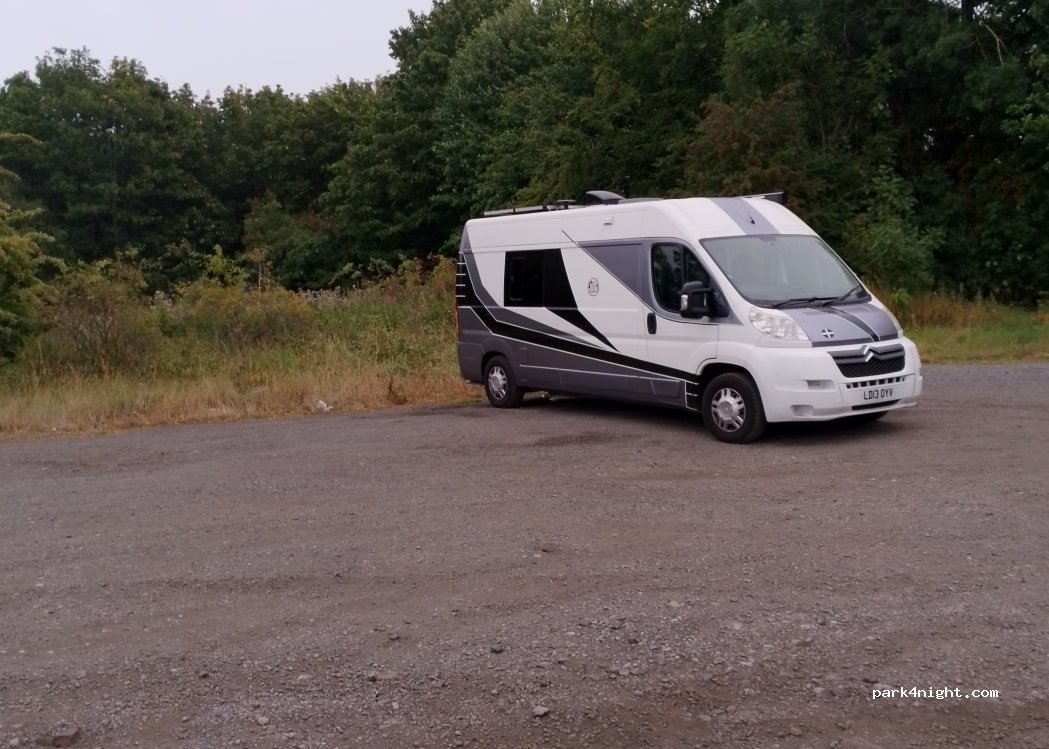 Around an acre of level hard standing with 2 entrances. No signage at all. Some cars (around 12). Quiet with reasonably rural surroundings. Near the army barracks at Catterick. Great stopover.