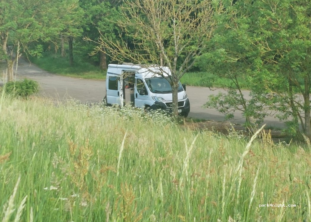 Endroit très calme où nous avons passé une nuit sans aucun bruit de voiture c’était vraiment bien. De l’espace pour jouer avec les enfants. Il y a un restaurant à côté mais qui ferme à 21h donc après plus de bruit. La police est quand même passé pour nous dire qu’on ne pouvait pas rester plus d’une nuit.