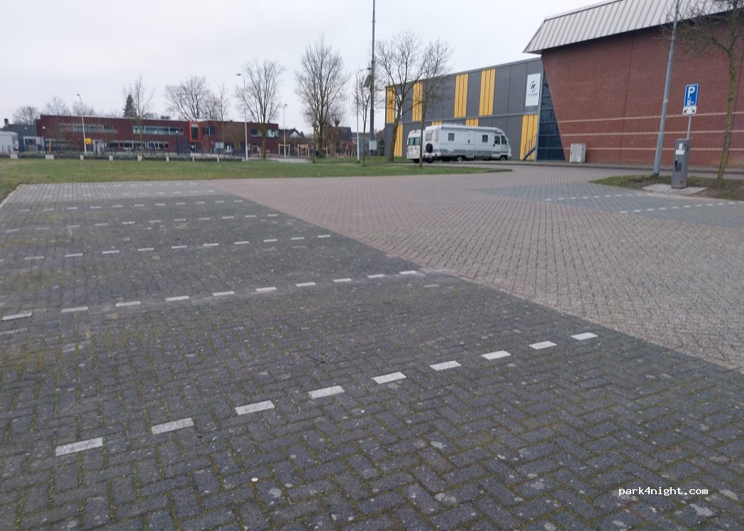 Deze plaatsen zij extreem schuin ( voor achter én links rechts , eigenlijk alleen te doen met 'n luxe levelsysteem. Jammer hoor. Plek is verder prima. Er stond verder niemand dus konden wij schuin gaan staan waardoor 't levelprobleem verholpen was. Prima voor 1 nacht. Sporthal op zondag niet open dus waarschijnlijk rustiger dan door de week.