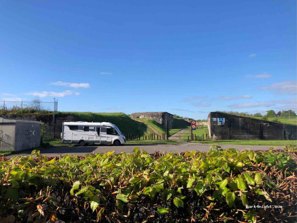 Just OK. lot of passage in this parking. road a bit too close for noise sensitives. The ravel biking route is passing at this spot so you can easilly walk arround. the fort itself is military property so you can only visit with guided tour. Good 4G and rubbish available.