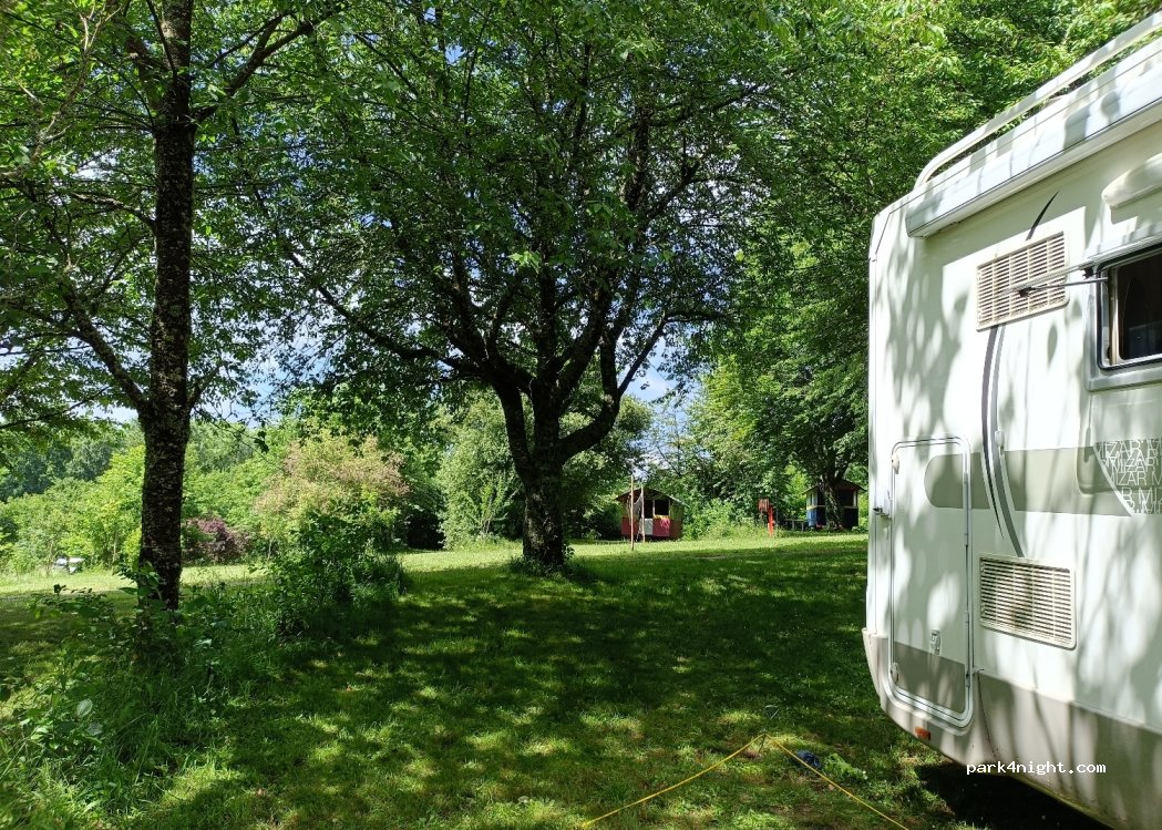 Stayed for one night here - met by very friendly owners who introduced us to Bob Marley, their gorgeous dog! Right on the lake, we were able to use their pedalo for free. Also free pétanque area, lovely big pitch for camper van