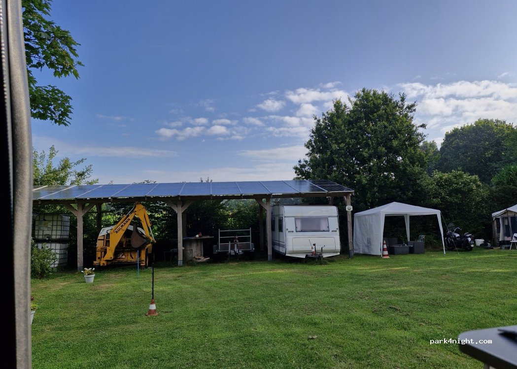 A very helpful owner who allowed us to turn up and empty our toilet. Looked a quiet secluded site. With signs for dog walks. A small entrance from the road so would think bigger vans over 7.5 m would struggle . Looked to be be some long stayers on site.