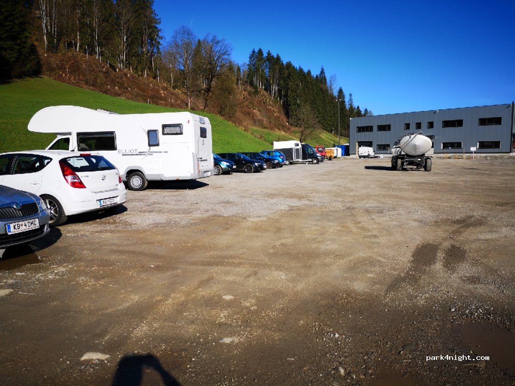 Großer kostenloser Schotterparkplatz im Besitz von SkiWelt. Wir denken, dass es in Ordnung ist, außerhalb der Saison hier zu bleiben, da es im Winter als Parkplatz für Skilifte genutzt wird. Ruhiger, intensiverer Verkehr am Morgen, wenn Leute hierher kommen, um ihre Autos zu parken. In der Nähe von Kitzbühel. Verboten, nachts zu bleiben