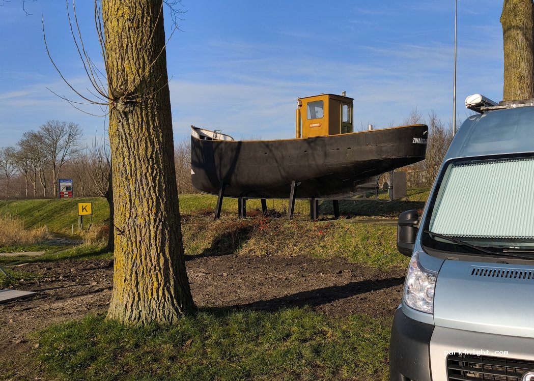 Parking le long du canal. Proximité de la route mais peut dépanner pour une nuit. Piste cyclable pour aller à Giethoorn 12kms.