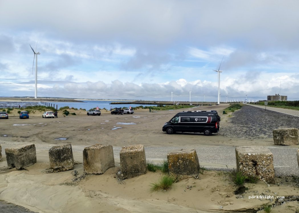 Tolle Fotoperspektive auf die Deltawerken vom Deich. Genügend Freifläche zum Parken tagsüber.