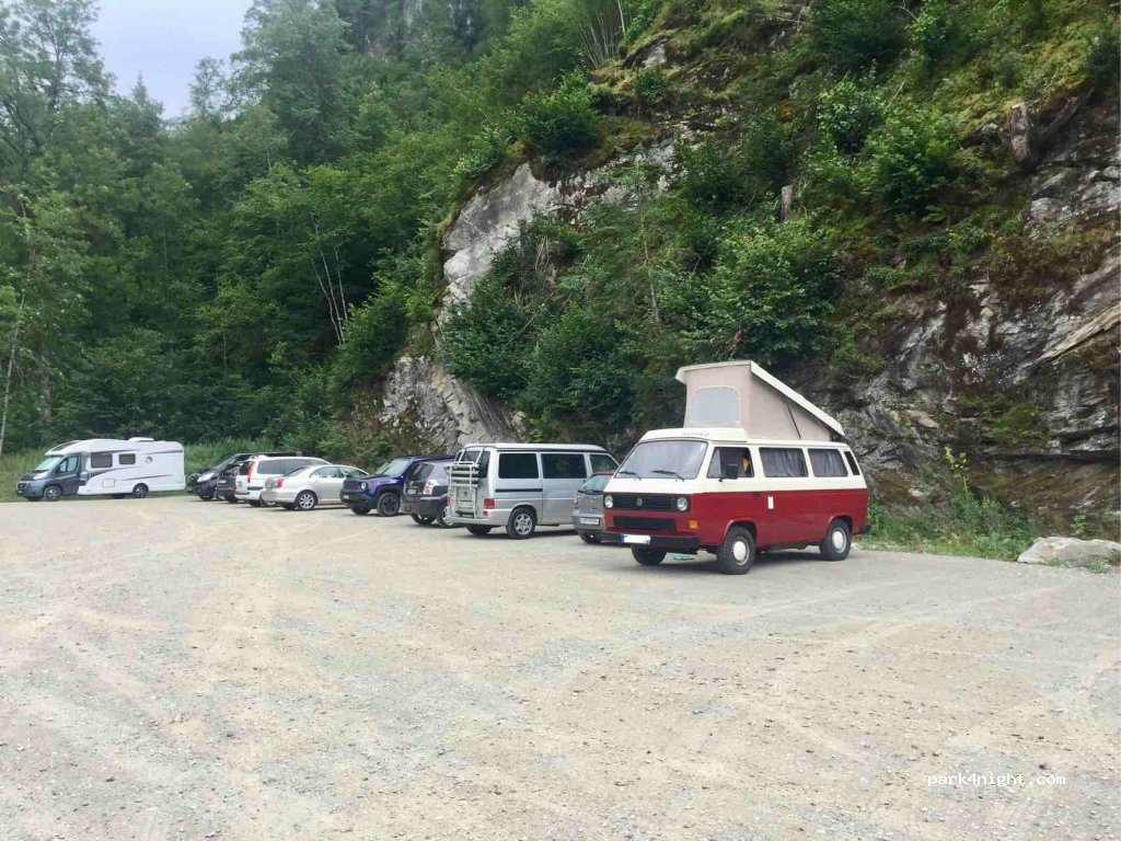Super Parkplatz um die Schlucht zu besuchen (12franken pro Person). Groß genug für jede Art von Wohnmobil oder Wohnwagen. Leider keine Übernachtung erlaubt