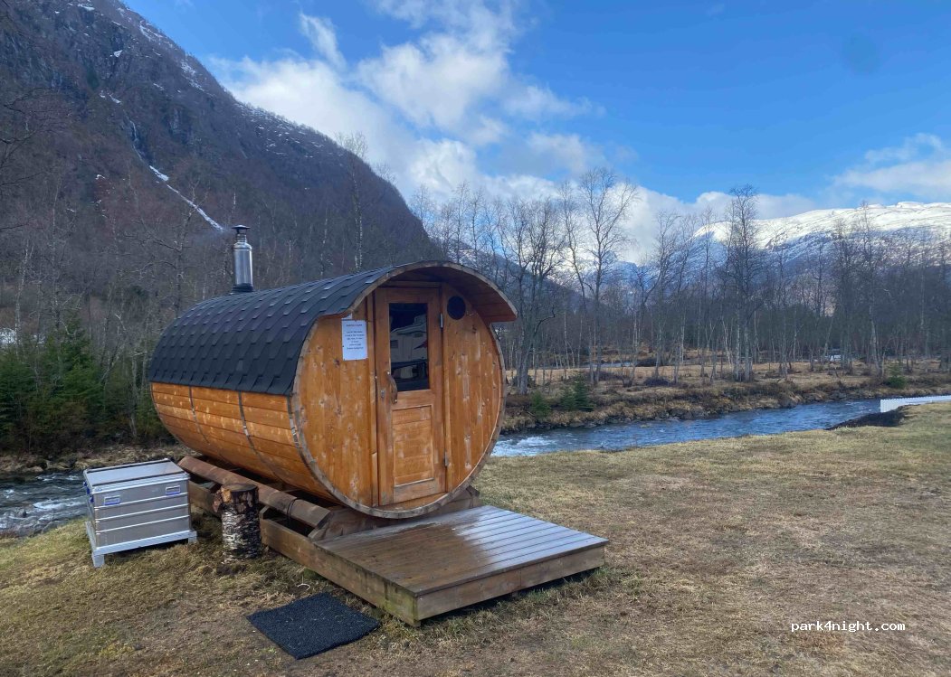 Heel fijne plek, dagje langer gebleven om storm Hans te vermijden. Proper sanitair, douche (10NOK voor 5 minuten), 280NOK incl elektriciteit, droogkast en wasmachine aanwezig (10NOK voor 40 minuten), een gezellige warme tv kamer waar je kan zitten, kookvoorzieningen en top of the Bill: een sauna met uitzicht in de sauna op de rivier (100NOK per persoon voor een uur, vragen aan receptie om