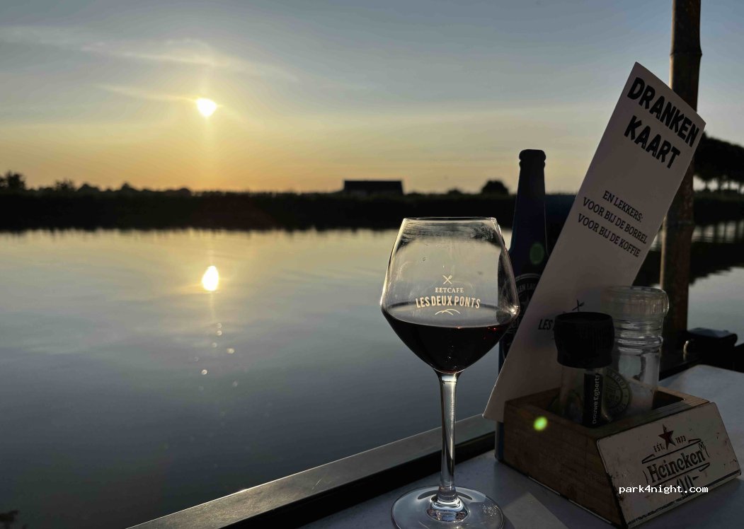 Gratis plekje zonder voorzieningen. Consumptie verplicht en dat was geen straf. Heerlijk gegeten in het restaurant en later bij de camper genoten van een mooie zomeravond.