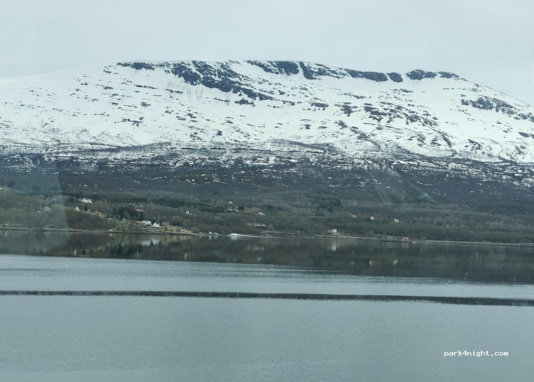 nous avons passé une nuit, avec la neige comme accompagnatrice, super aire de stationnement électricité 16amp ce qui pour la saison est super. vue sur le fjord, réveil avec les mouettes vraiment très bien nous avons payé 200 couronnes dont 50 pour l'électricité à la station service.