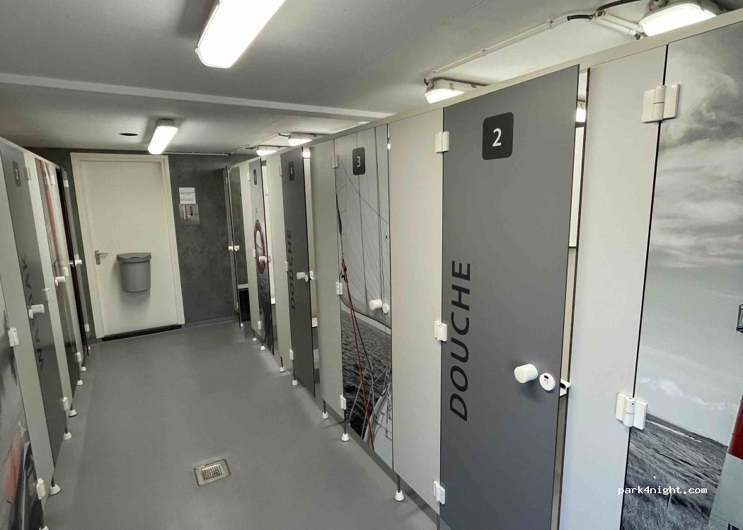 Port locations. WC, shower, chemical toilet, sink, bicycle rental, restaurant, wifi, gas available in the shop of the port. Free emptying of gray water and dirty water. Everything was very clean. In summer on real camper places, in winter on the parking lot of the marina itself, otherwise there are boats on the real camper places.