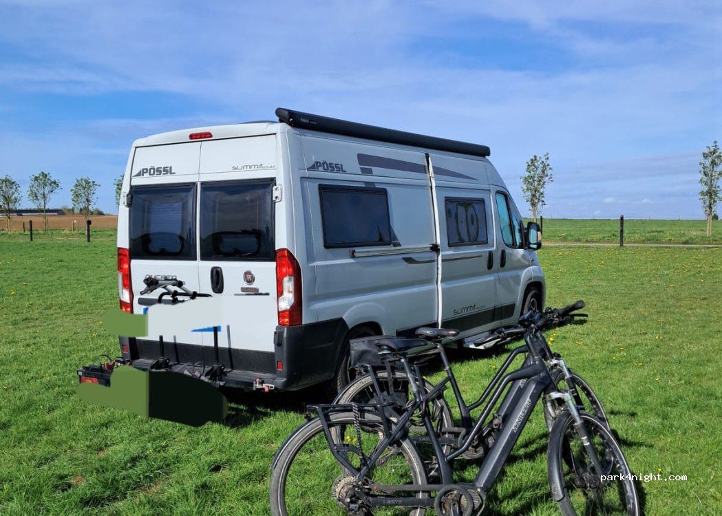 Ein sehr schöner und ruhiger Stellplatz auf dem Land, mit Blick auf Pferde und Ponys, Weiden und Felder. Sehr netter Platzwart, sehr gepflegte Parzellen, mit Schotterbett für die Fahrzeuge, Rasen für nicht nur die Fläche der Markise. Da passt auch mehr drauf. Die gestutzte Hecken als Raumtrenner zum Nachbarn runden alles ab. Strom, V&E ist in den 15 Euro pro Nacht enthalten. Passt alles.