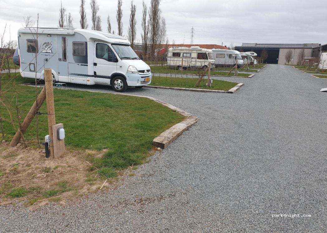 Helemaal top. Ruime plekken, geschikt tot campers van wel 10! meter. Goed service punt, ook voor campers met een zwart water tank. De schuifdeur naast de goot kan open, zodat je er goed boven kunt staan. 10 ampere stroom. Ook leuk met kinderen. Speeltuintje. In de koeling liggen aardappels van eigen land, appelsap, eieren en nog meer. Het is vlakbij Doornik. Wat wil een mens nog meer.