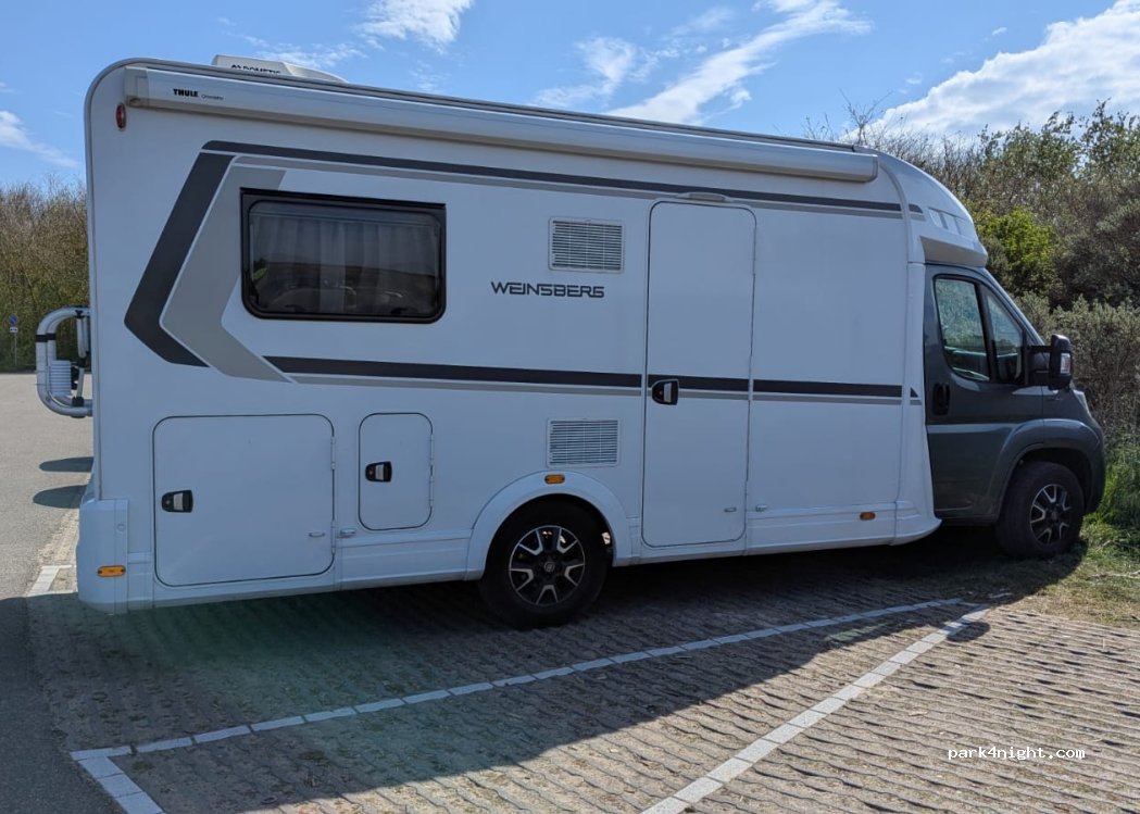 Wir standen mit einem 7 m Wohnmobil auf dem Parkplatz, wenn etwas nach vorne fährt passt es genau. Es ist ein schöner Weg zum Strand, wo unser Hund um die Zeit frei laufen konnte. Danach ging es zurück zum Stellplatz.