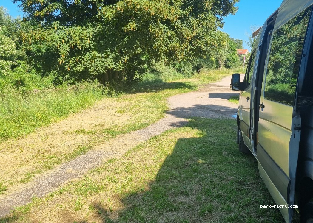 Mooie plek tussen de bomen of op een verharde plaats. Zeer rustig en op nog geen 200m van de Lidl. Prima voor een stille overnachting.