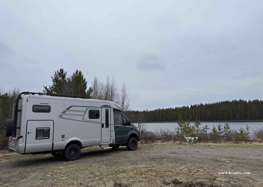 Sehr schöner Stellplatz direkt am Fluss. Wir haben am gegenüberliegenden Ufer einen Elch beobachten können. Aus Hundesicht:3/4 Tatzen, da es nur eingeschränkte Möglichkeiten für das Gassigehen gibt.