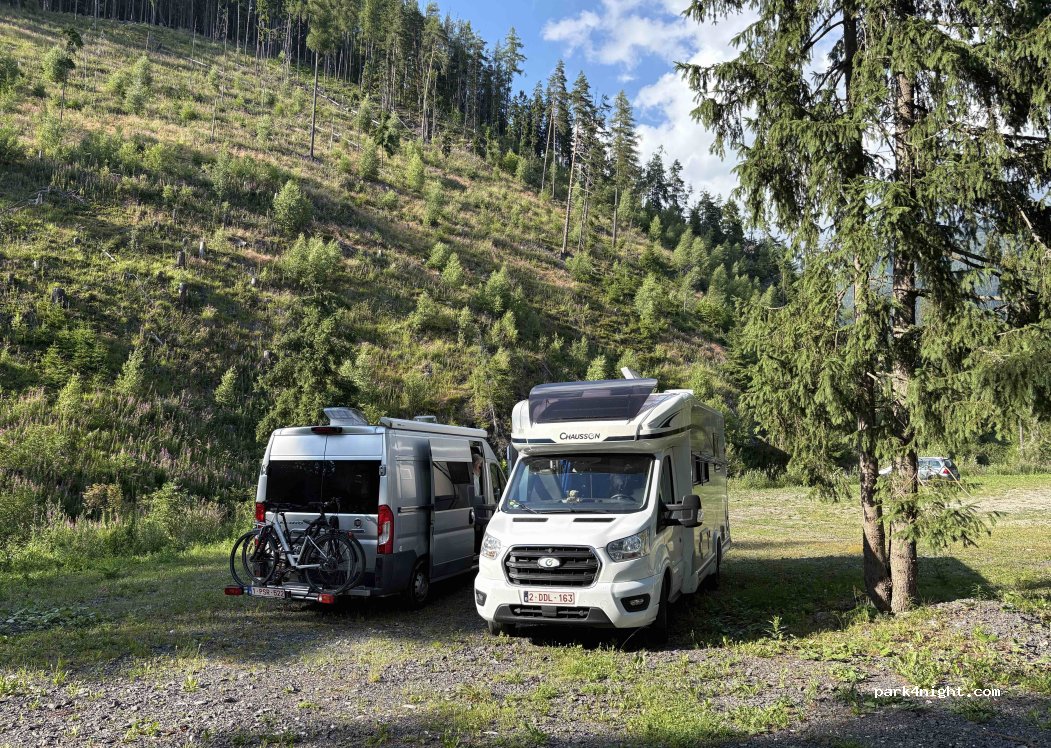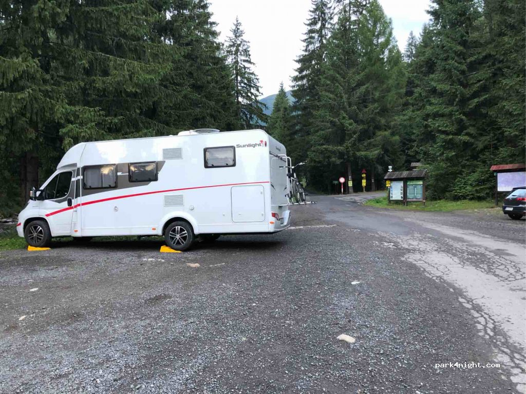 Basicly the only option to park in the valley, you pay 5€/24h, secure parking with entrance ramp. Toitoi on the site. Quiet at night. No problem to stay overnight. Enjoy easy hike to Ziarska chata or even further to some of the peaks.