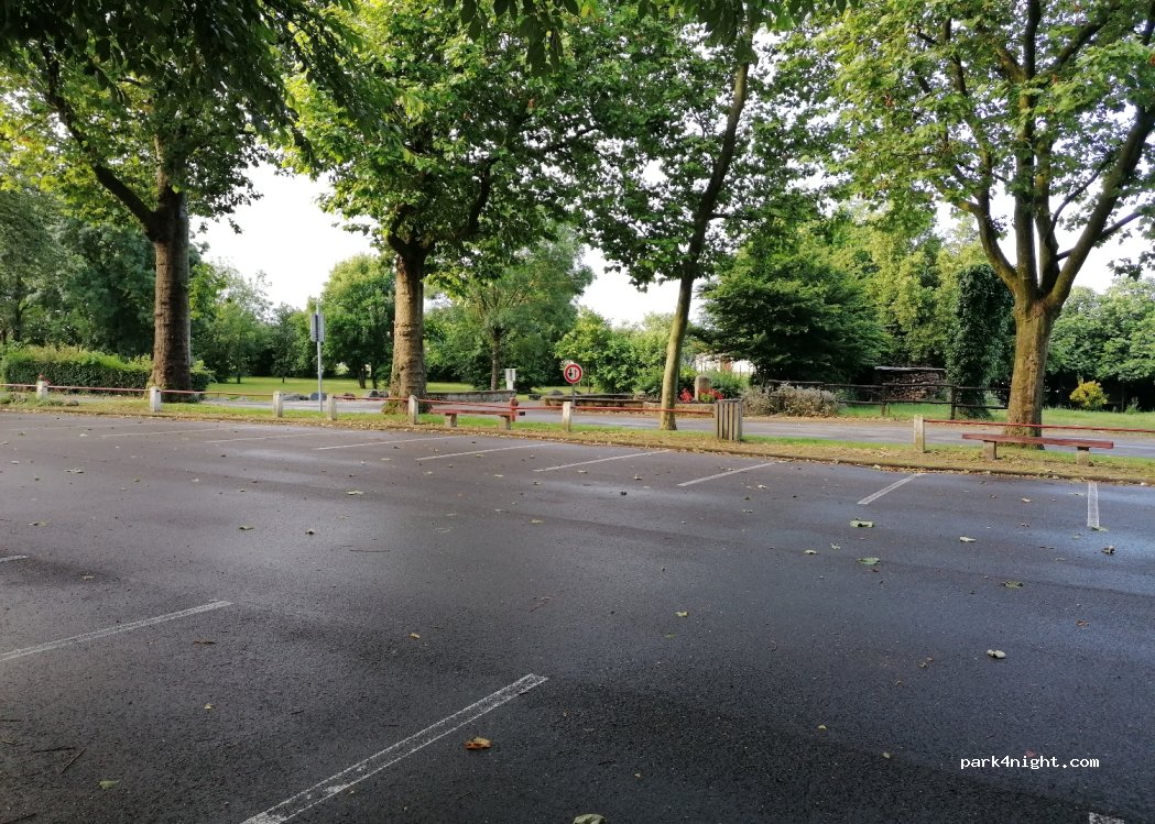 La première photo d'illustration ne correspond pas à ce parking mais à celui qui donne sur la rue principale. Celui-ci est à 50m en contre bas et il se nomme "aire de pique nique" (photo 2 et 3) il est au calme et sans restrictions.