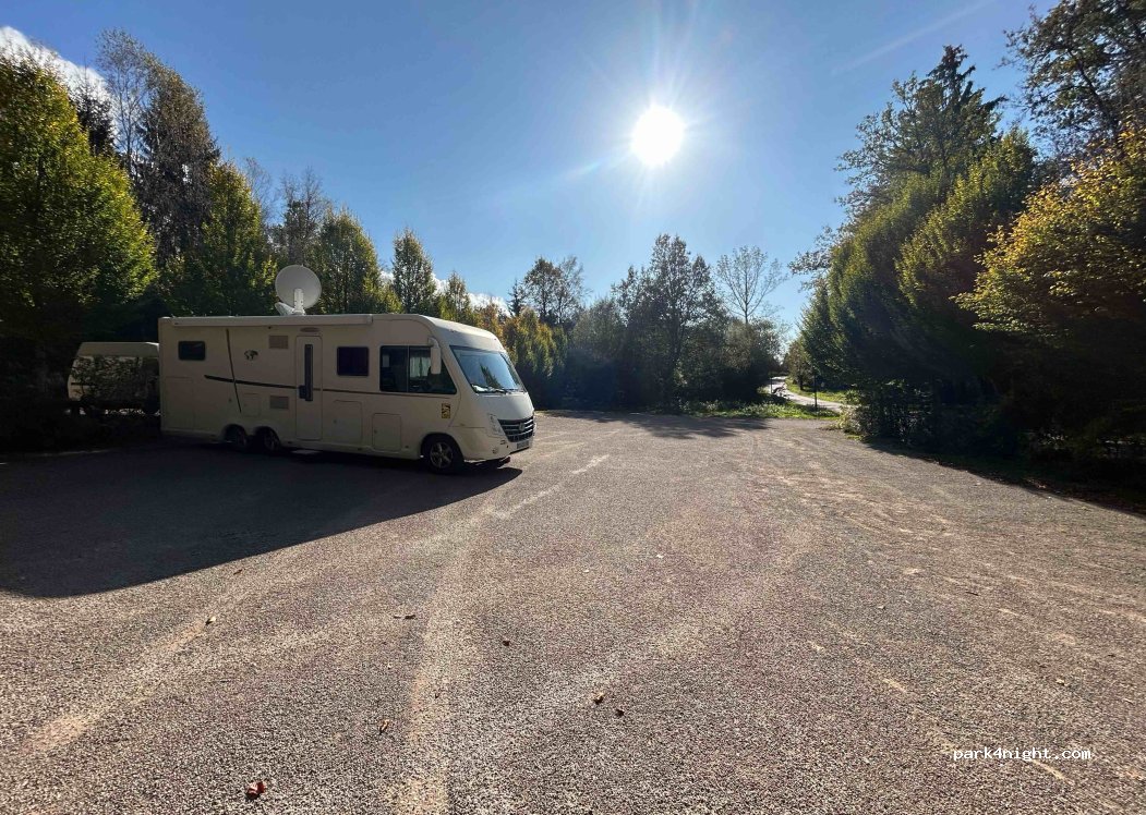 Tres beau parking bien exposé en face du lac . Chemin du tour du lac juste en face. Tres calme pour la nuit, nous étions 4 campings-car. Pratique pour les chiens .