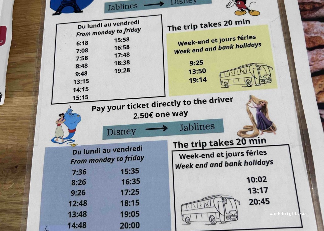 Anreise für über 3,00m WoMo über Chaliver und Stadt Jablines problemlos möglich. Alles ordentlich und sauber, Klopapier war auch da. Laden lächerlich überteuert. Bus am Wochenende jetzt auch 2355 von Disneyland zurück, Linie 24. Nach Paris von Disneyland aus (2€ pro Ticket) in 35 Minuten mit dem RER A zum Gare de Lyon.