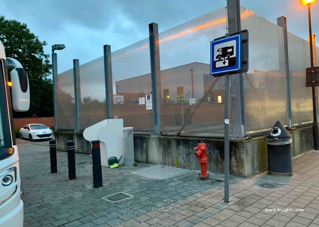 Makkelijk te bereiken. Goede services! Aangekomen op de parking was het even zoeken waar je de services kon vinden. Vergeet geen ,50€ op zak te hebben. Wij waren dit vergeten, maar gelukkig kon het zwembad ernaast ons helpen.
