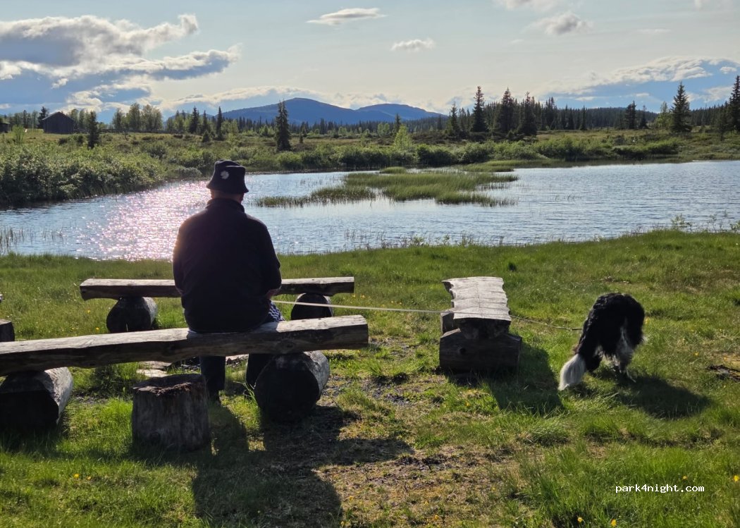 Bonito lugar frente a un pequeño museo al aire libre. Aparte de las vacaciones noruegas, un buen lugar para pasar la noche. En temporada alta no se si se puede pernoctar. Baños naturales detrás de la barra del museo.