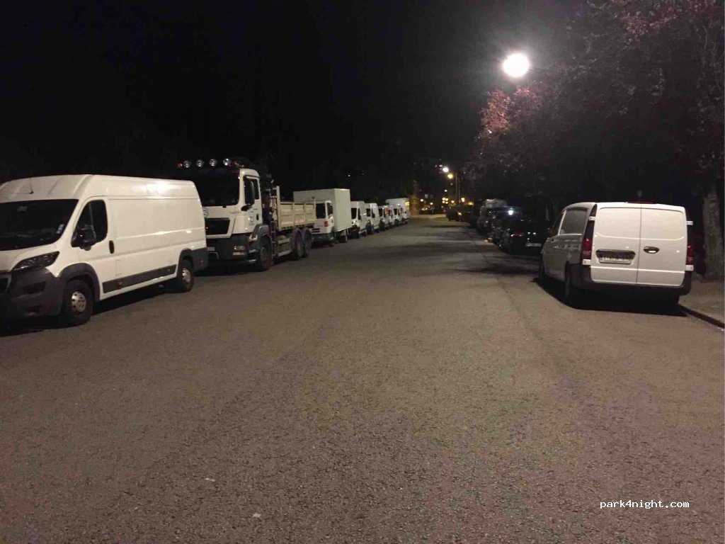Parkeerplaats op een industrieterrein. Recht tegenover de begraafplaats. 20 minuten met de bus naar het centrum (lijn 63). Het is helemaal gratis. In de buurt (net bij de bushalte) zijn betaalde openbare toiletten. Er is ook een wasserette met munten.