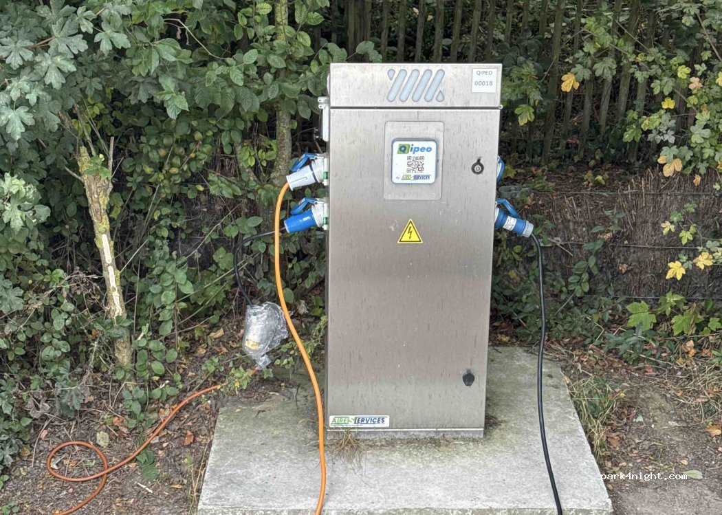 J’y ai passé deux nuits: la 1re près d’une borne et la 2e le plus loin possible de la route (très bruyante!!), et donc sans électricité. La tarification de celle-ci est de 3€ pour HUIT heures et non douze. Mon frigo s’est donc arrêté en pleine nuit! Et pas moyen d’avoir un peu d’eau pour rincer les toilettes, sauf si on paye (de nouveau!). Aire chère donc et Qipeo n’est pas conviviale du tout.