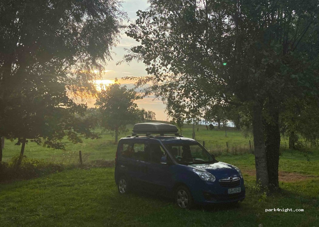 Ampio parcheggio sotto gli alberi, galline che razzolano felici e l'accoglienza di un famiglia contadina e verace, silenzio assoluto. non si parla inglese ma solo francese. abbiamo acquistato le uova fresche e fatto belle passeggiate nel bosco. i servizi igienici sono davvero spartani ma puliti. prezzo molto economico 14€ x una notte 2 adulti e 3 cani. consigliato