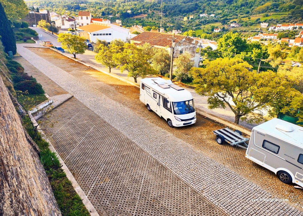 Bays on the carpark are 7m long and the walk into the Castelo should not be missed. Not sure if parking overnight was allowed so left at dusk.